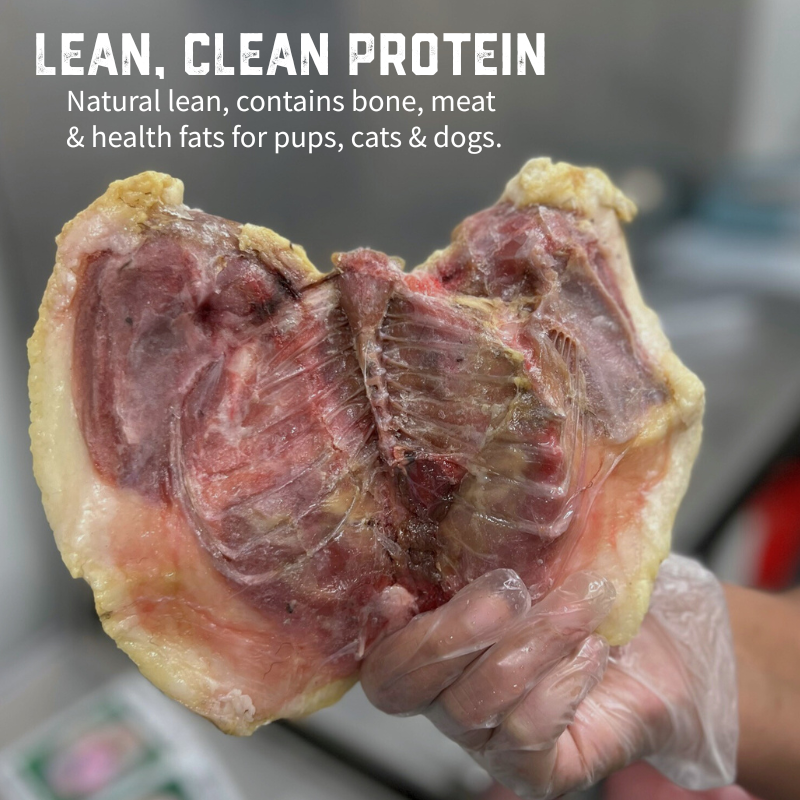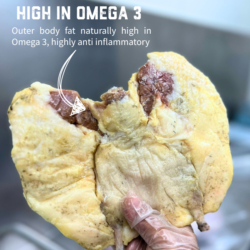 High-protein mutton bird frames rich in omega-3s, collagen, and minerals to support joints, dental health, and natural feeding instincts.