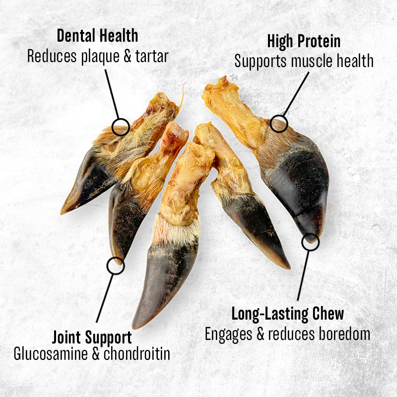 Natural deer hooves — long-lasting chews that promote dental health and satisfy your dog’s instinctual need to chew.